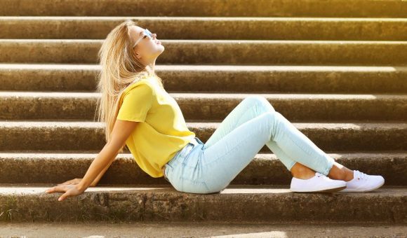 La joven modelo caminó por las calles de París ataviada con este look cómodo y casual de jeans cropped, una camiseta blanca, botas negras y un abrigo de cuero.